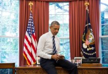 Ian Bogost cho rằng ông Obama gần gũi với công chúng nhờ hình ảnh gắn mình với điện thoại, dùng Twitter hay Snapchat và...