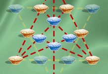 Đó là câu đố về 12 cái bánh nướng, xếp thành hình sao lục giác, mỗi cạnh gồm 4 bánh.