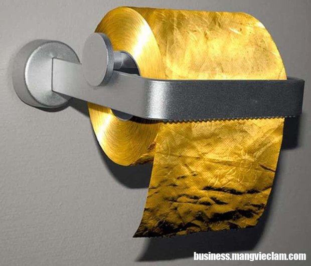 Một trong những thứ chẳng đáng giá nhiều có lẽ là giấy vệ sinh. Thế nhưng, bạn sẽ phải giật mình khi nhìn thấy cuộn giấy vệ sinh làm bằng vàng của hãng giấy Toilet Paper Man ở Úc. Chúng được làm hoàn toàn từ vàng miếng 22K rồi dát ra siêu mỏng. Nhà sản xuất cũng khẳng định chúng an toàn cho người sử dụng.